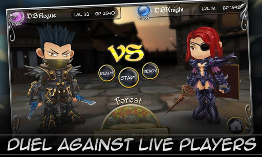 Crush your opponents using skill and strategy in Dueling Blades! You can level up and advance your fully customizable 3D character with skills, armor, weapons and classes. Battle against live opponents in 1 vs 1 strategic combat and rise up in the Ranking System. Enjoy the story and battle against Bandits, Pirates, and the Undead whom threaten the peaceful village of Willowsbrook and raise your weapon against the tyranny of the corrupted kingdom in the single player challenges. Duel your friends or match up against similarly skilled opponents via the balanced matching system.