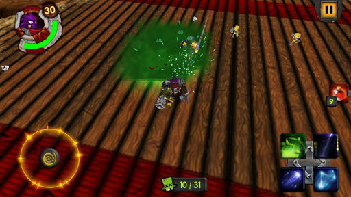 The trial is carried out on scenarios where hordes of orcs rush to try to kill you or kick you out of the arena. To defend the himself the knight has a variety of skills such as meteors, flamethrowers, time control, earthquakes, and a vast arsenal of swords, hammers, staves and magic equipment, which can be combined in hundreds of different ways, according to the preference the player. For example, if the player chooses to use melee weapons, it can specialize in skills such as Cut, Blade Storm and Seismic Impact, which despite its short range, are lethal.